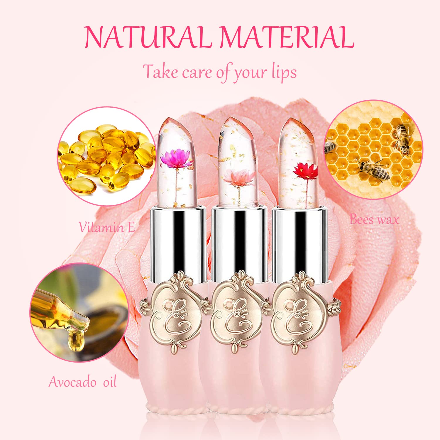 Zmiana koloru: Zmiana temperatury koloru: Nawilżający/długotrwały/błyszczący/antystarzeniowy/bezpieczny/różne zmiany temperatury koloru, dzięki czemu możesz mieć swój ekskluzywny kolor ust w różnym czasie.