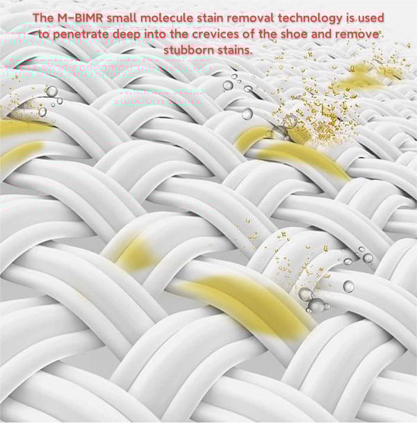 Po latach badań i rozwoju przez zespół profesjonalistów, zastosowano naukową formułę usuwania plam, aby uzyskać wysoce skuteczną metodę czyszczenia. Technologia usuwania plam za pomocą małych cząsteczek M-BIMR jest wykorzystywana do wnikania głęboko w szczeliny buta i usuwania uporczywych plam.