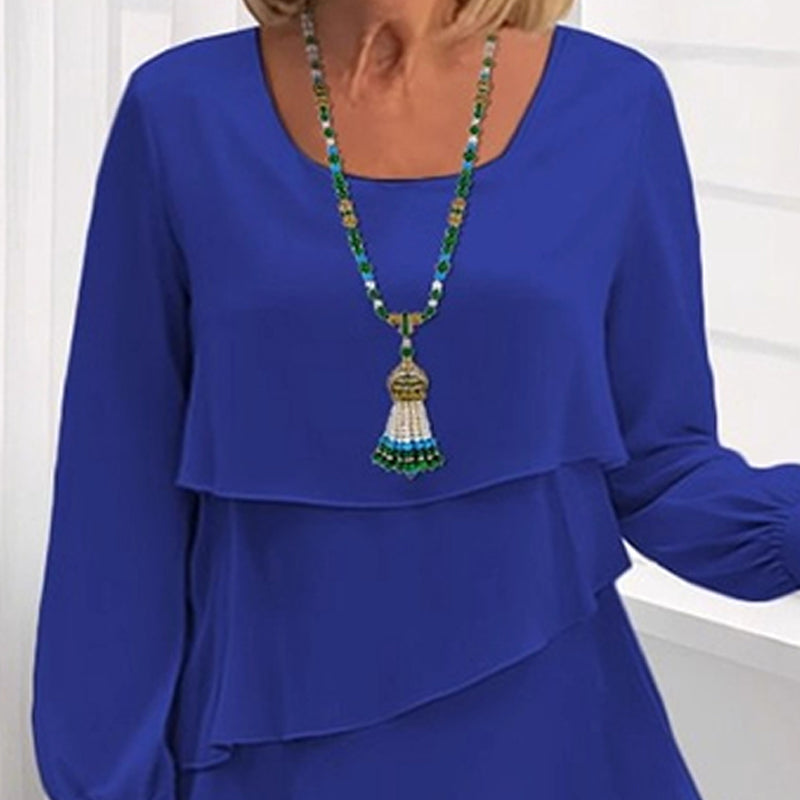 Sylwetka z kaskadowymi falbanami dodaje objętości i płynności. Doskonale zakrywa brzuch, jednocześnie nadając mu atrakcyjny kształt i zapewniając wyrafinowany ruch.