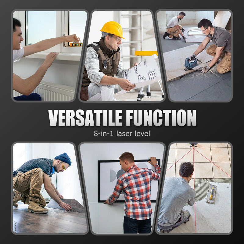 POMIAR WYSOKIEGO KĄTA: Zapewnia bardzo dokładne pomiary z pełnym pokryciem kątowym 4×90°, pomagając bez wysiłku uzyskać dokładne bezwzględne lub względne pomiary kąta i nachylenia w każdym scenariuszu.