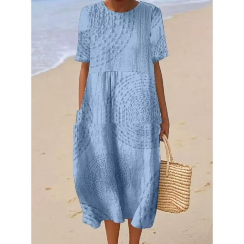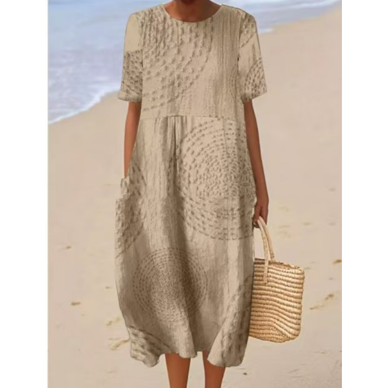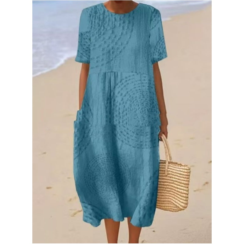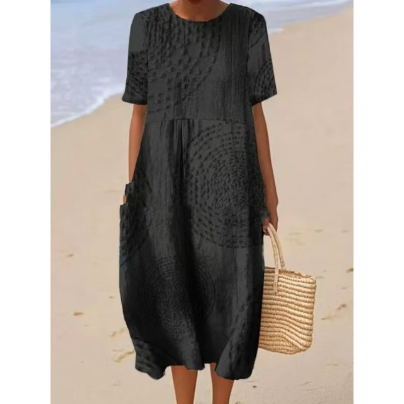 LUŹNY KRÓJ: Zaprojektowana z myślą o wygodzie, ta sukienka midi ma luźny, luźny krój, który zapewnia swobodę ruchów i przewiewność, dzięki czemu idealnie nadaje się do codziennego noszenia.