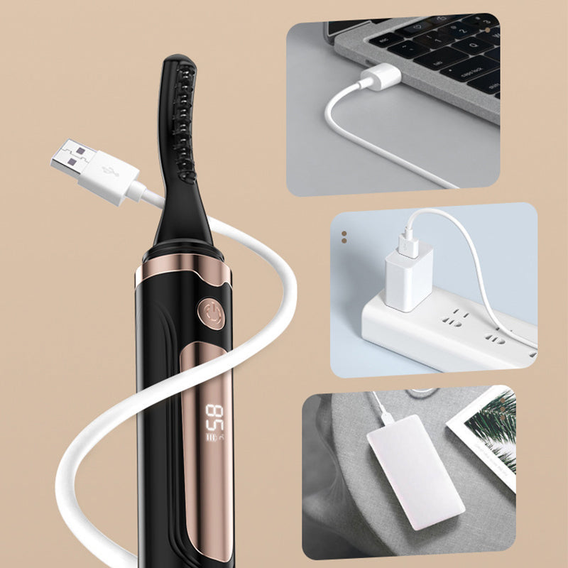 PORTABLE USB CHARGING - This compact eyelash curler can be charged wherever you are on the go with a mobile power source such as a computer, making it easy to use for travel and on-the-go use.