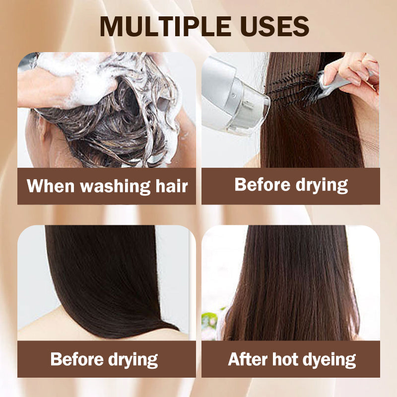 WIELOFUNKCYJNE UŻYCIE: Zapewnia 4 wielofunkcyjne sposoby użycia. Wymieszaj go z ulubionym szamponem lub maską do włosów, aby wzmocnić działanie. Używaj go przed suszeniem, aby zapobiec uszkodzeniom termicznym, do codziennej pielęgnacji lub po farbowaniu, aby zmniejszyć uszkodzenia. Możliwość dostosowania sprawia, że jest to niezbędny element każdej rutynowej pielęgnacji włosów.