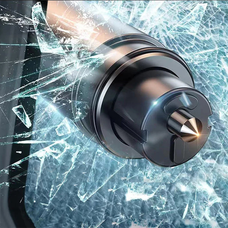 ŁAMACZ SZYB DO POJAZDÓW: Ten młot do rozbijania szyb 2 w 1 ma wbudowaną sprężynę wysokociśnieniową i wytrzymałe ostrze ze stali wolframowej o twardości 55. Wraz z siłą uderzenia 6 kg może błyskawicznie rozbić solidne szkło okienne. Uwaga: Metalowa końcówka pozostaje wewnątrz narzędzia - wysuwa się tylko podczas rozbijania szkła.