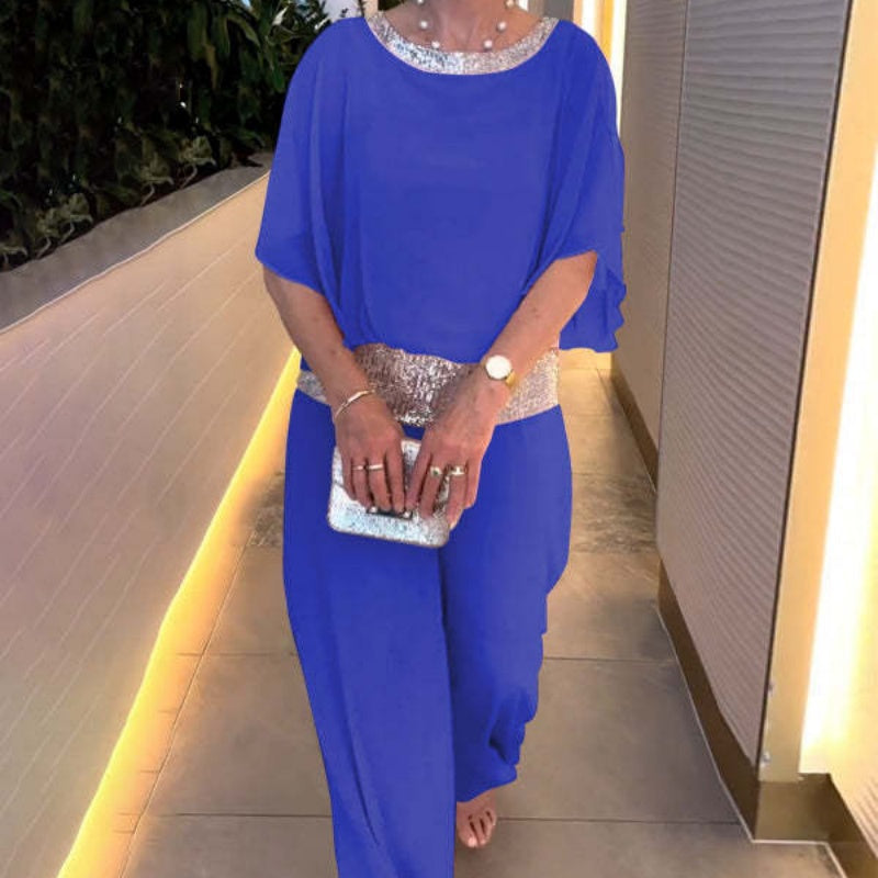 Zestaw zawiera: 1*Elegancki damski dwuczęściowy zestaw top i spodnie z cekinami