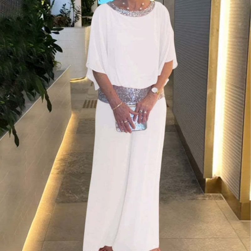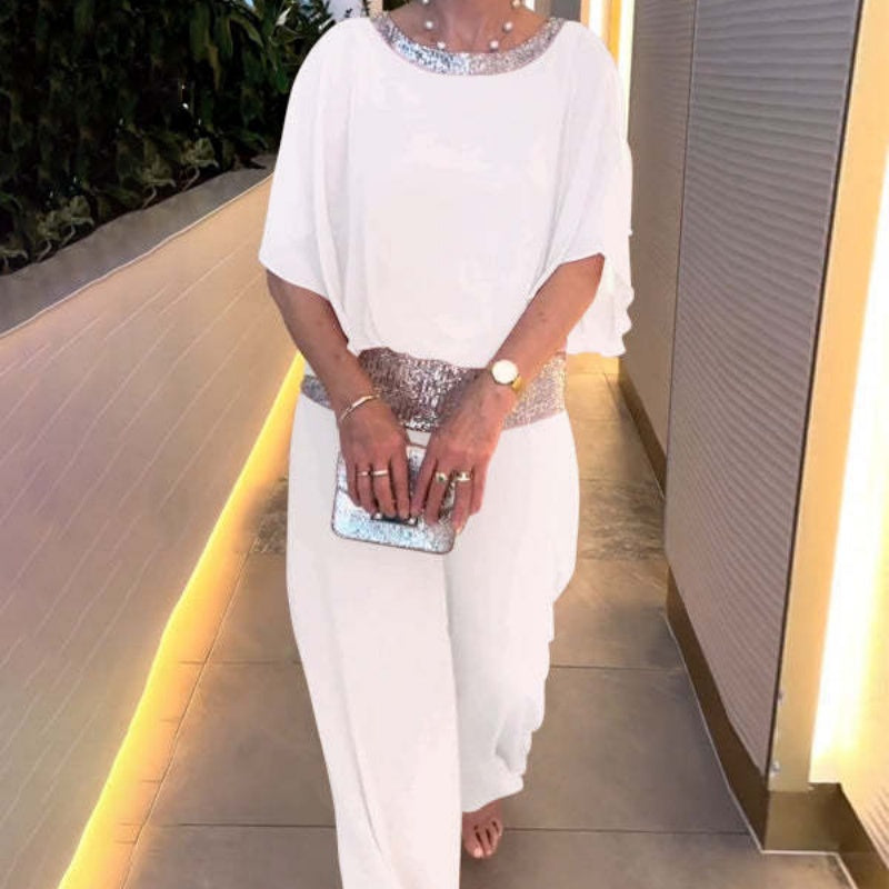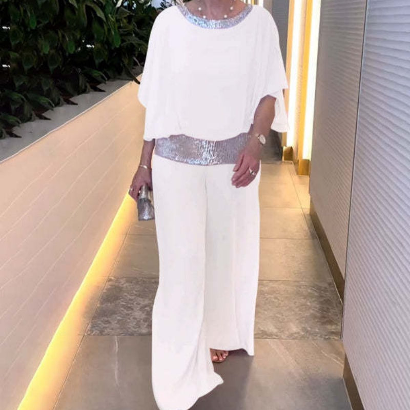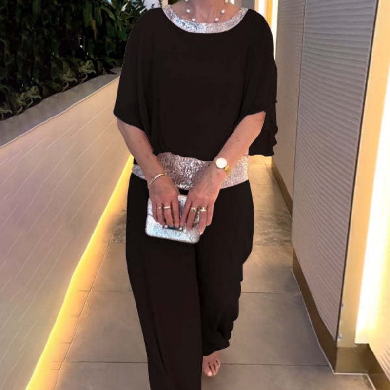 DETALE Z CEKINAMI – Pięknie zdobiona cekinowa talia dodaje blasku całemu zestawowi. Ten przyciągający wzrok detal nadaje stylizacji wyjątkowego charakteru – idealna propozycja na specjalne okazje lub wieczorne wyjścia.