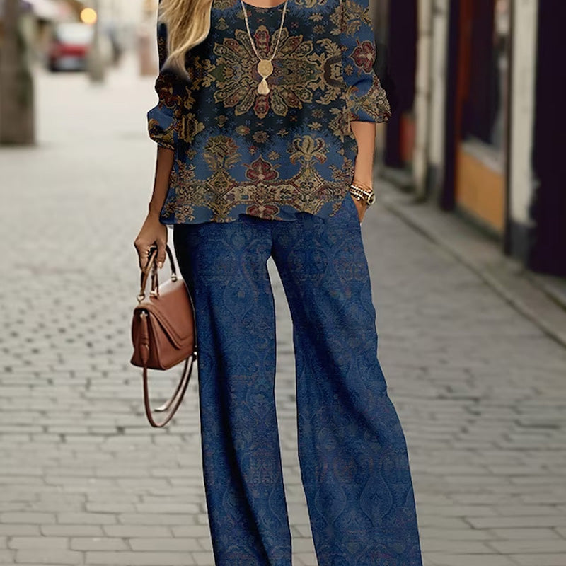 Package Includes: 1* Women's Soft Casual Top & Wide-Leg Pants Set