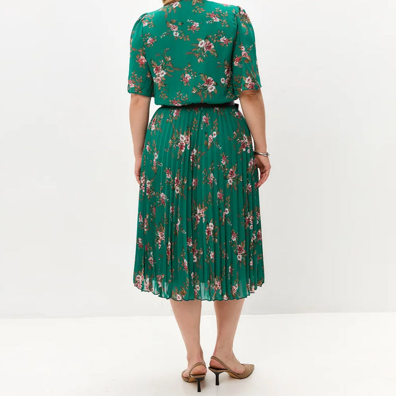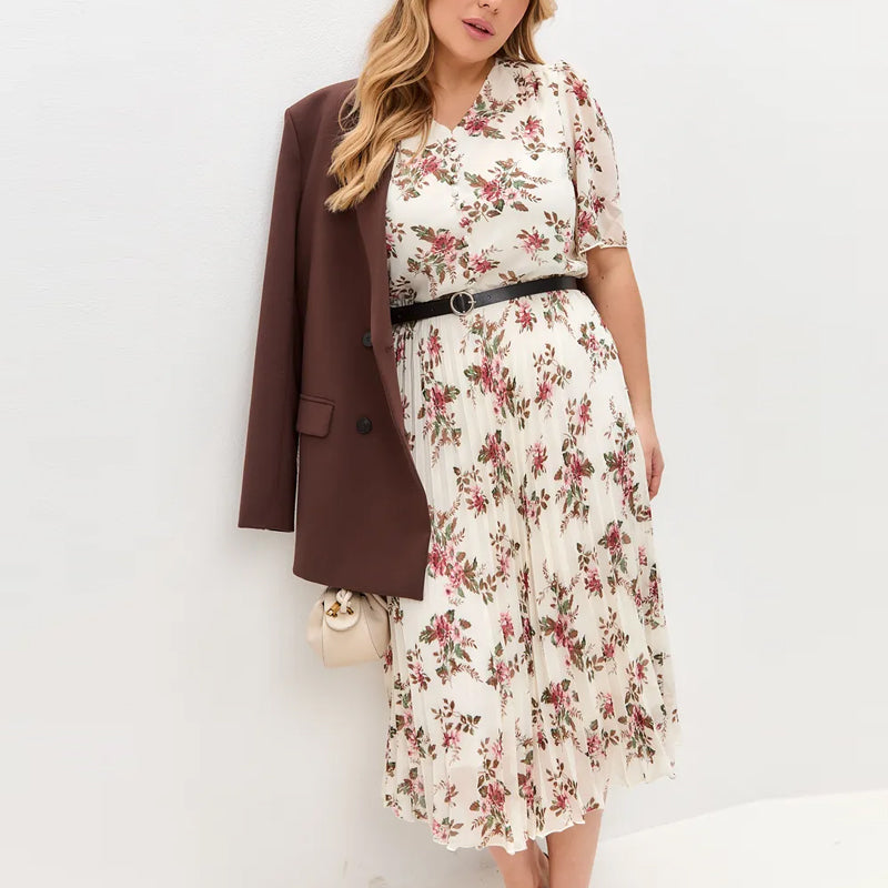 Opakowanie zawiera 1 x Elegancka szyfonowa plisowana sukienka w kwiaty